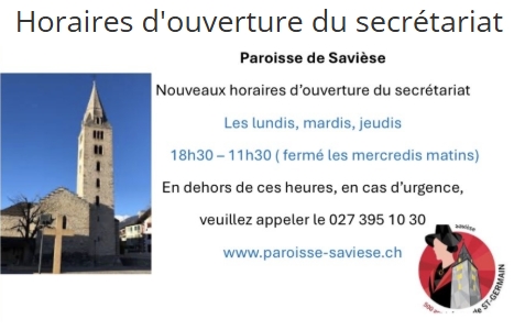 Horaires d'ouverture du secrétariat